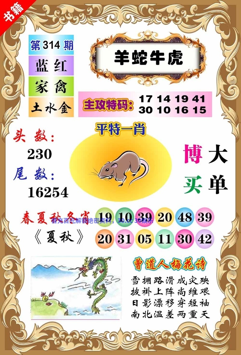 315期曾道人梅花诗:更新中 解释:更新中 综合解肖:更新中 主特12码:更新中 | ||||||||||||||||||||||||||