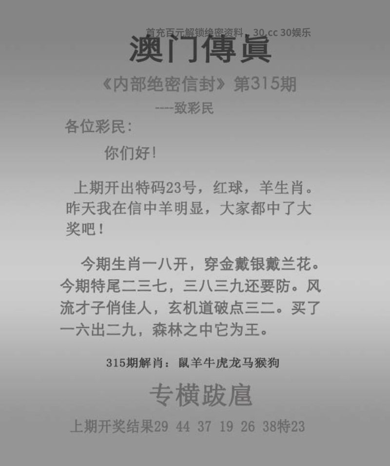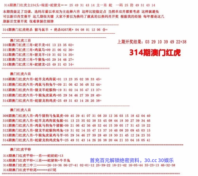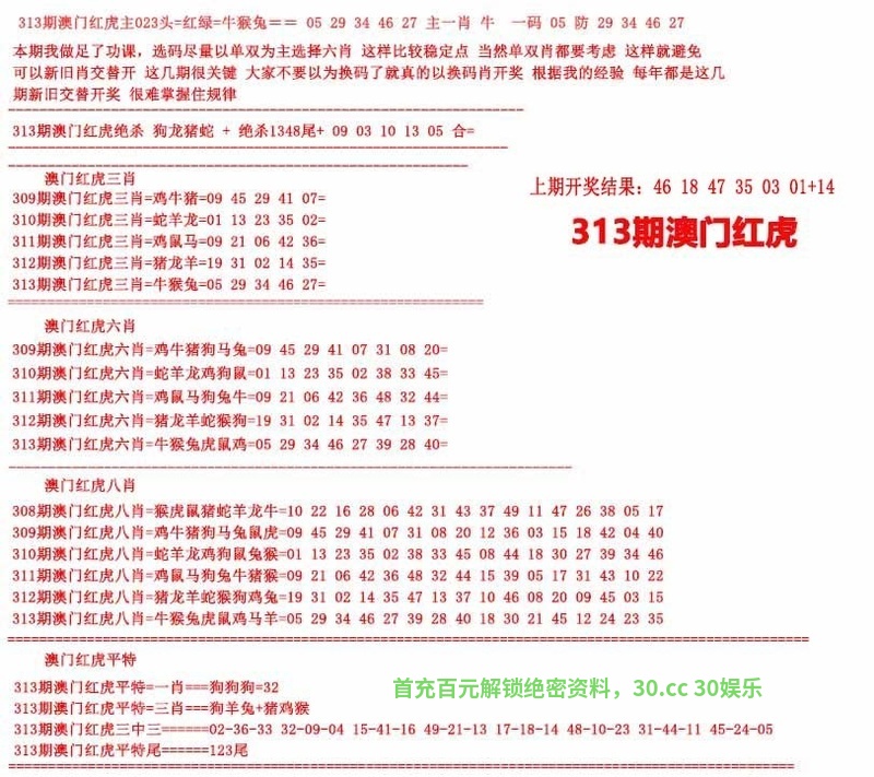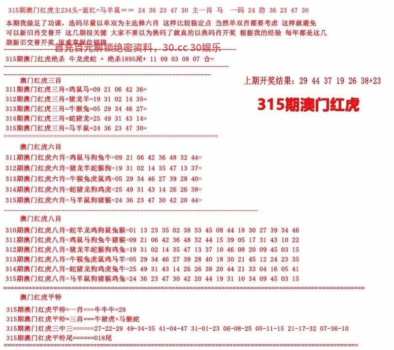 | 315期:【红虎好料】『两季中特』 | 红虎好料 |
